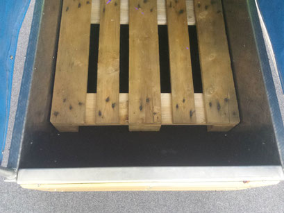 In Zusammenarbeit mit unserem Hausschreiner haben wir den originalen Alu-Riffelblech-Pritschenaufbau mit Holz verschönert - das Auge fährt schliesslich auch mit!
